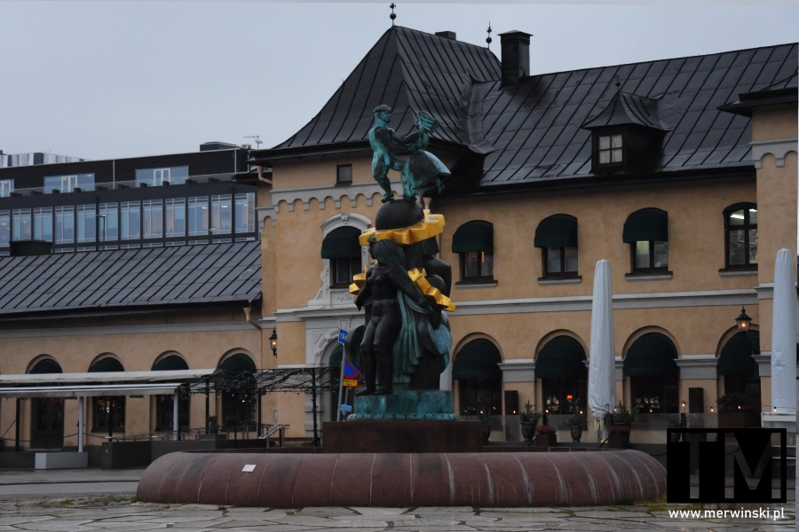 Szwecja Uppsala co zobaczyć: rzeźba obok dworca w Uppsali